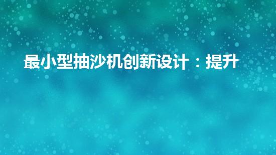 最小型抽沙機(jī)創(chuàng)新設(shè)計(jì):提升效率的抽沙設(shè)備如何改變產(chǎn)業(yè)格局?